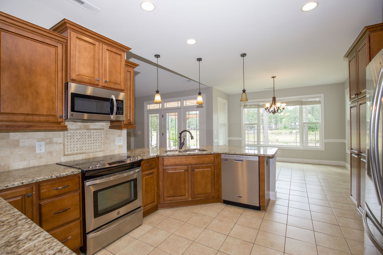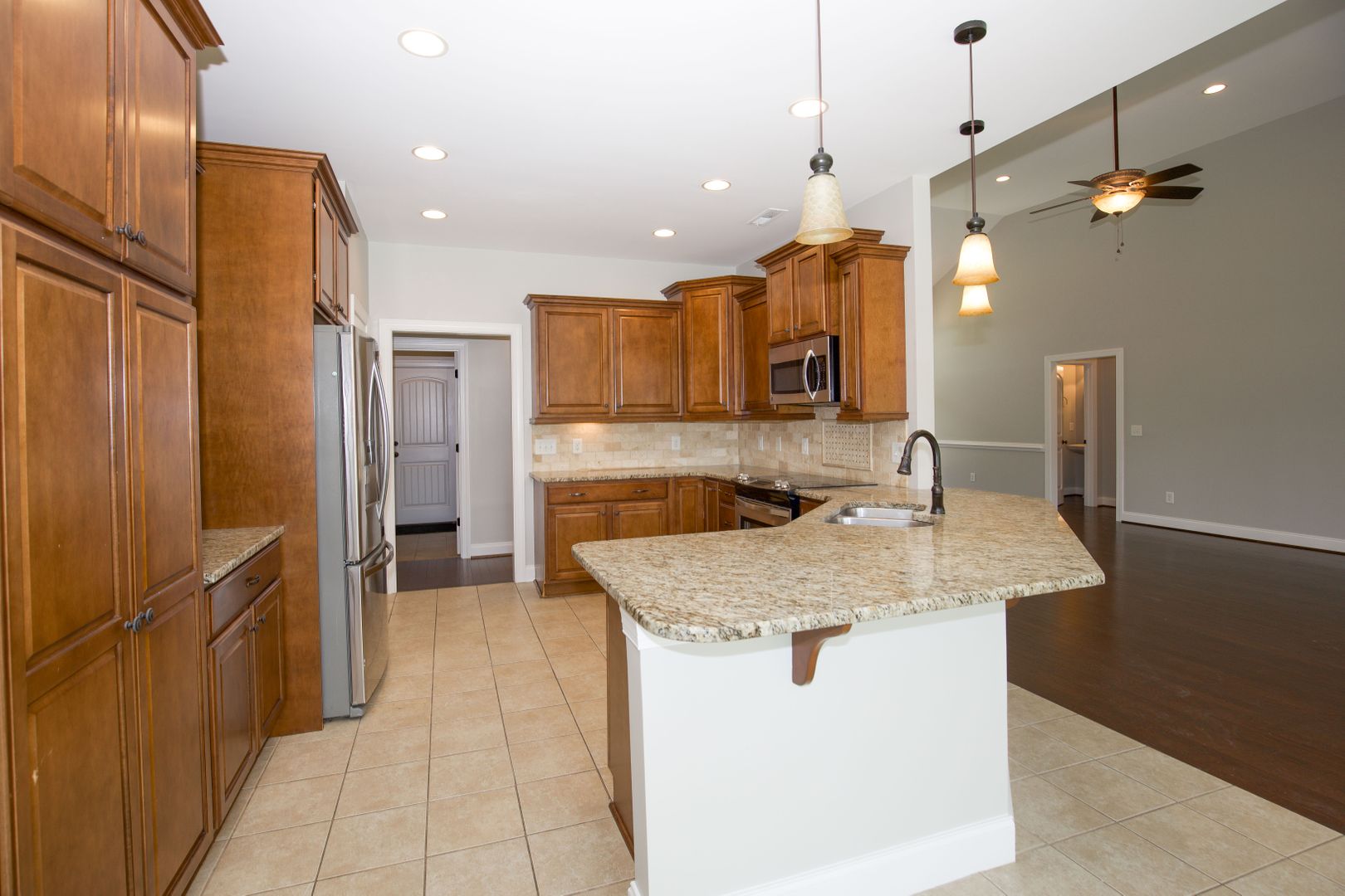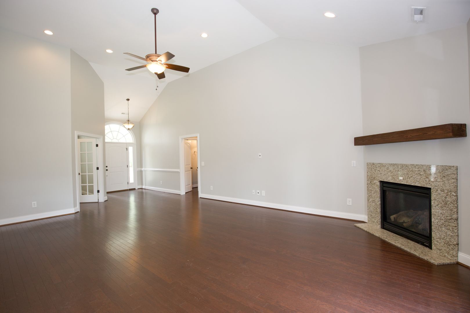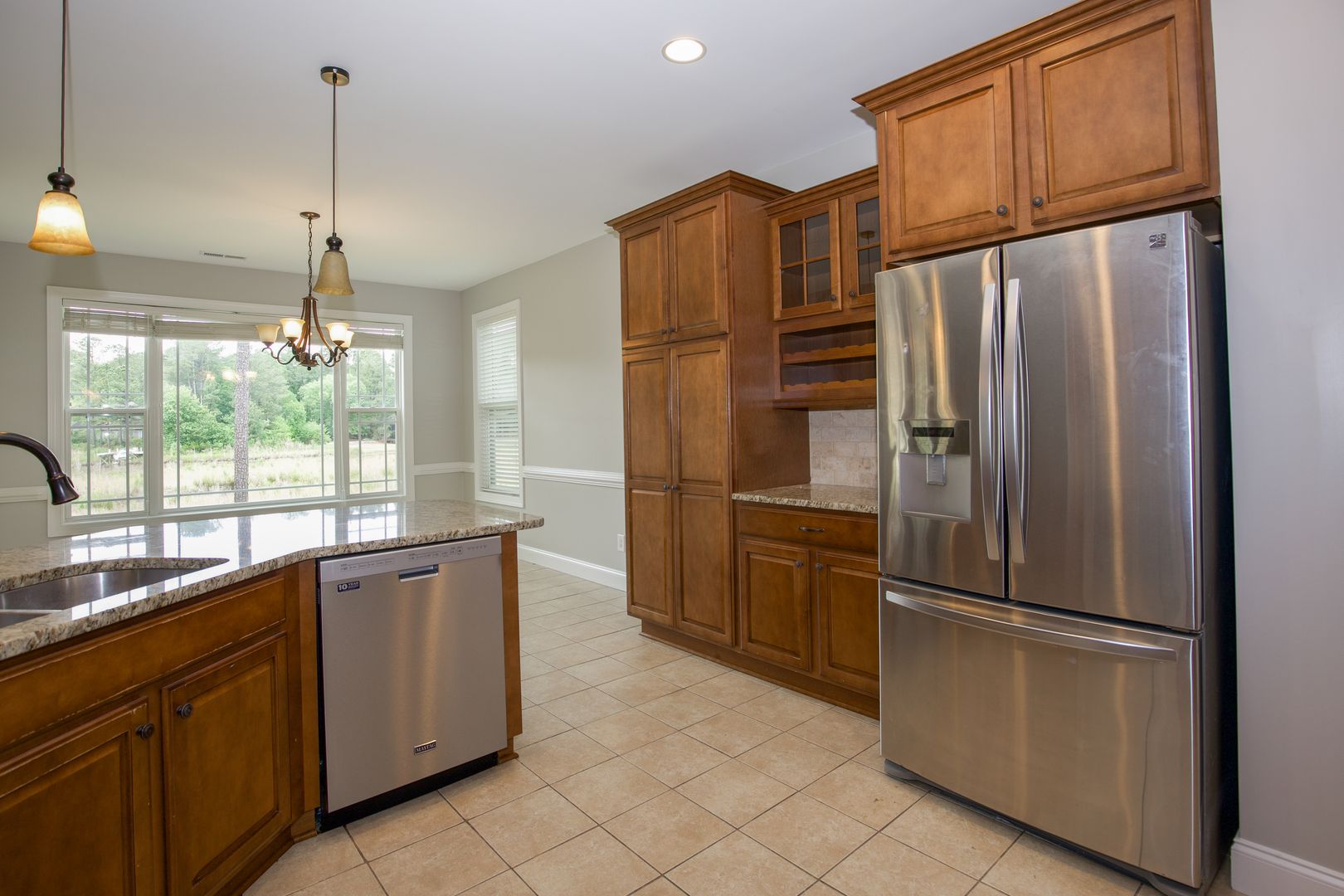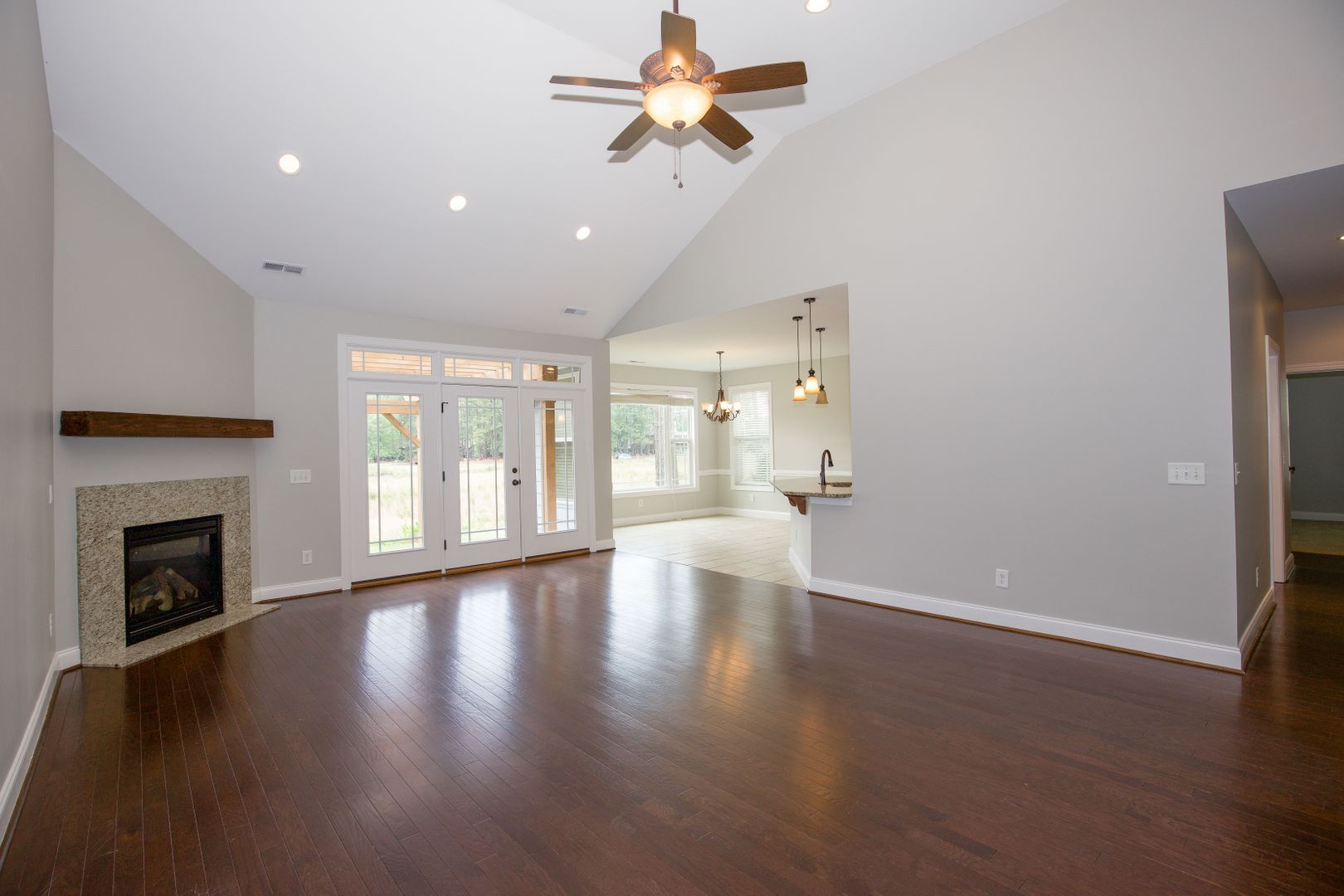 Beautiful home in an idyllic location just 20 minutes from Ft. Bragg (the "back" way, so you don't have to deal with Fayetteville traffic). The house is located at the end of a peninsula surrounded by extremely friendly neighbors, with an open floor plan and vaulted ceilings in the living room--perfect for entertaining and just enjoying the peaceful surroundings. The house has three bedrooms, plus a fourth room with french doors and a closet that can be used as either a bedroom or an office. There are two full baths, both with double sinks, and the master bath has a huge tiled walk-in shower with both a traditional shower head and an overhead "rain" showerhead. The master bedroom also features a walk-in closet with built-in shelving, as well as a smaller linen closet in the bathroom. The kitchen is modern and open, with granite countertops, a glass-top electric stove, and tons of cabinet space, as well as a pantry closet with built-in shelves. The utility room has some built-in shelving as well as washer-dryer hookups, and leads out to the 1.5-car garage with a large attic storage space above it.